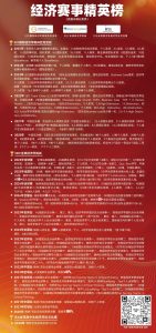 - 全国站执教的1支队伍 (AS组) 成功晋级全球总决赛;1人获得宏观经济满分名人堂 (DR组);1人获得国际经济满分名人堂 (DR-Smart组);1支队伍获得全国案例大剖析金奖 (DR组)